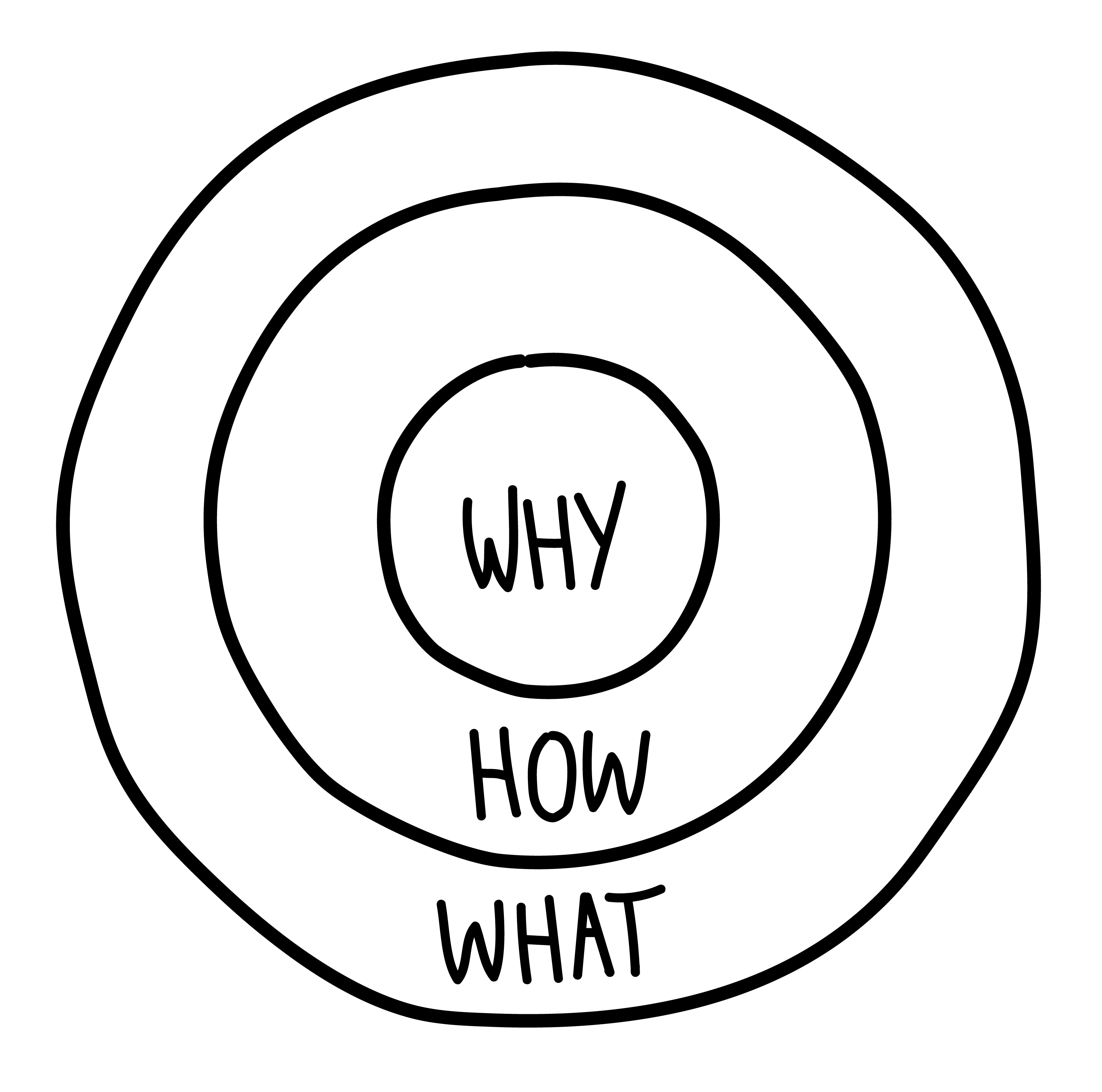 Ook om je team te kunnen inspireren, moet je waarom helder zijn. Je waarom is waar je voor wilt gaan, waar je als organisatie goed in bent, en waarin je je onderscheidt van anderen. Probeer dus na te gaan waarom jouw organisatie doet wat ze doet: wat zijn jullie beweegreden? Pas als je samen op zoek gaat naar het gemeenschappelijke, wat jullie allemaal bindt, kun je het verschil maken. Als je een duidelijke visie hebt, volgen het hoe en het wat vanzelf. Sinek noemt dit the Golden Circle: je waarom is de kern, het hoe en wat zijn de cirkels daaromheen.