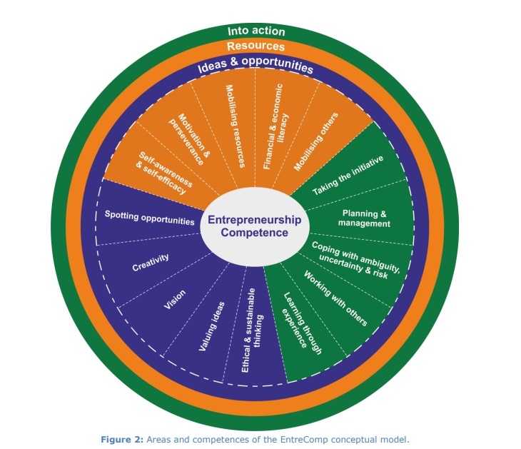 Elk gebied omvat 5 competenties, en samen vormen deze de 15 competenties die een ondernemersgeest: