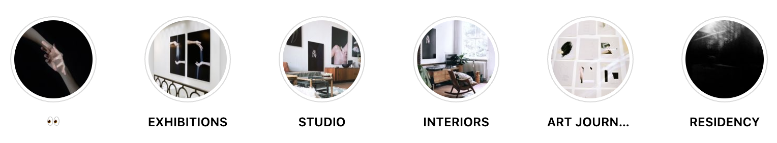 Onder je bio kun je ‘highlights’ neerzetten, een verzameling van jouw stories. De meeste privé-gebruikers maken van hun hoogtepunten een soort dagboek en bewaren hun stories gesorteerd op jaar. Als zakelijk gebruiker kun je je stories beter bundelen op onderwerp. Bijvoorbeeld onder ‘Projects’, zoals Ingrid van der Veen. Of onder ‘Exhibitions’, zoals fotograaf Sophie de Vos.