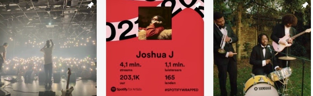 Je kunt een aantal posts ‘pinnen’ bovenaan je profiel. Die berichten blijven dan altijd bovenaan staan (naar het icoontje van een punaise dat verschijnt bij de post). Zet je mooiste project in de etalage. Of kies een bericht waar je veel reacties en likes voor kreeg. Muzikant Joshua J licht bijvoorbeeld de muziekvideo en live uitvoering van zijn nummer ‘Loving You’ uit. En Odair Pereira laat beelden van een fotoshoot en zijn modeshow zien.
