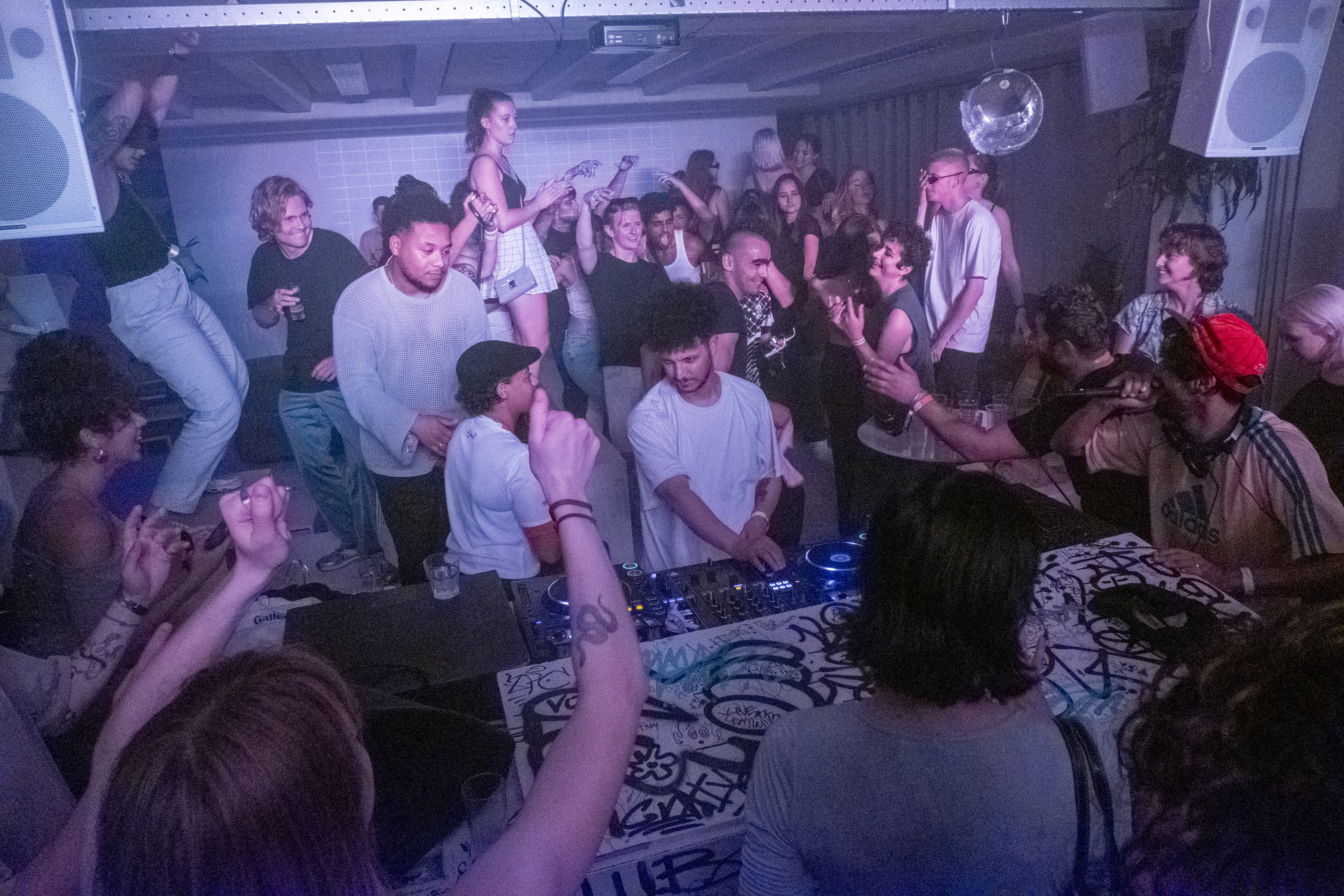 Shirin: MONO was één grote ruimte, dus je moest het met elkaar vinden. Het was vooral vertrouwen geven en veel praten om gemeenschappelijkheid te vinden. Soms had de ene meer succes met zijn avond dan de ander, en dat vraagt om balanceren tussen verschillende ego's. Niet per se in de negatieve zin. Mensen zijn ook zelf bezig met zichzelf binnen die plek te manifesteren. Daarin moet je balanceren. Zorgen dat iedereen zich gehoord voelt en begrijpen waar we naartoe willen. Het was heel intuïtief.