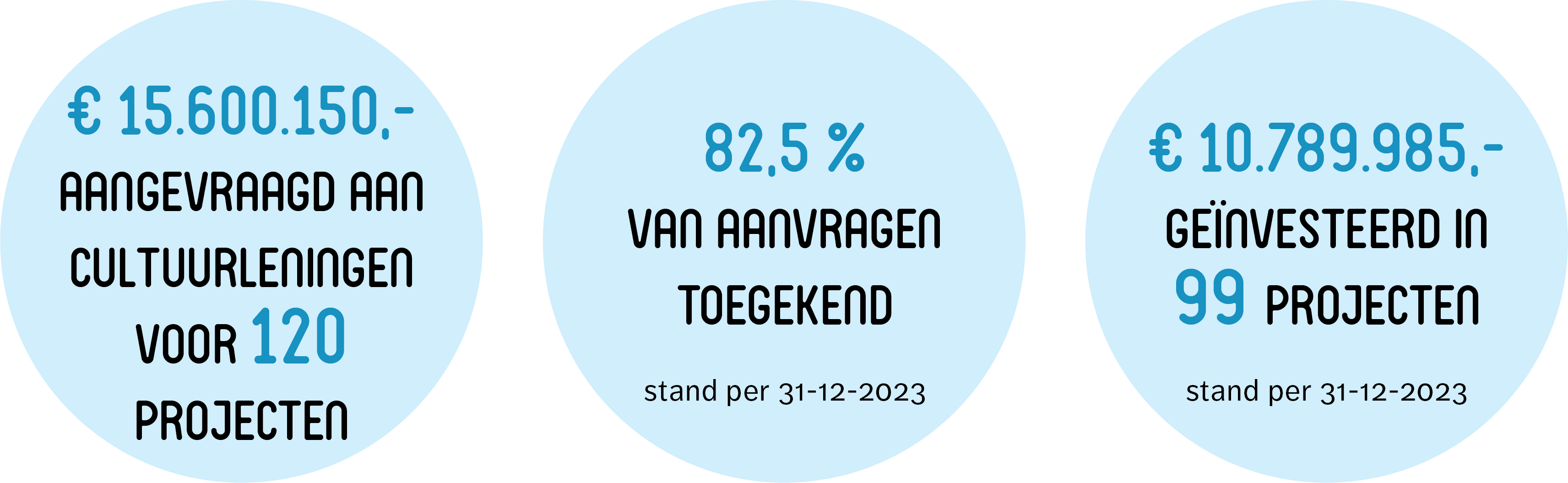 In 2023 konden 99 projecten van kunstenaars, creatieve makers en culturele organisaties worden verwezenlijkt met een lening via Cultuur+Ondernemen.